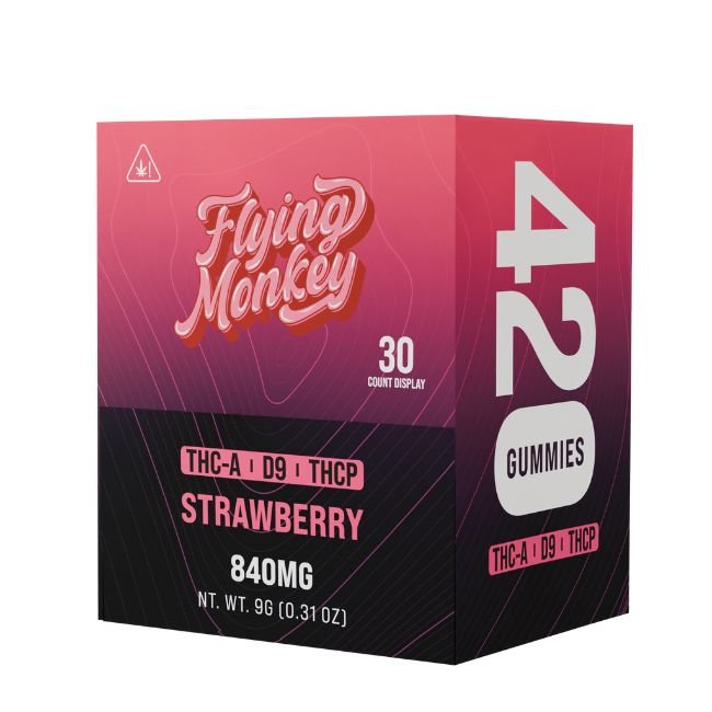 Enjoy the delightful flavors and potent effects of Flying Monkey 420 Gummies, each pack containing 2 gummies with a total of 840mg THC. Perfectly dosed and individually wrapped for freshness, these gummies offer a convenient and enjoyable way to experience cannabis.
