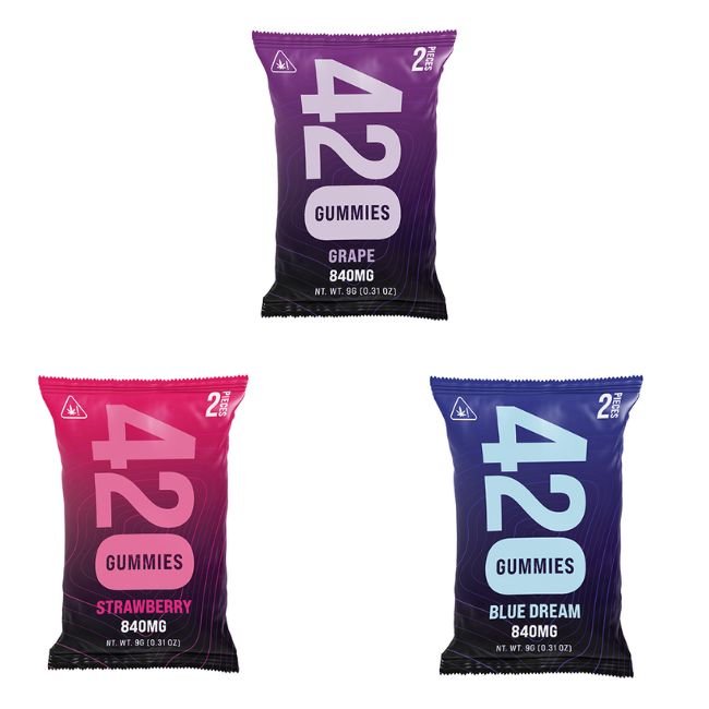 - High Potency: Each pack contains 2 gummies with a total of 840mg THC.