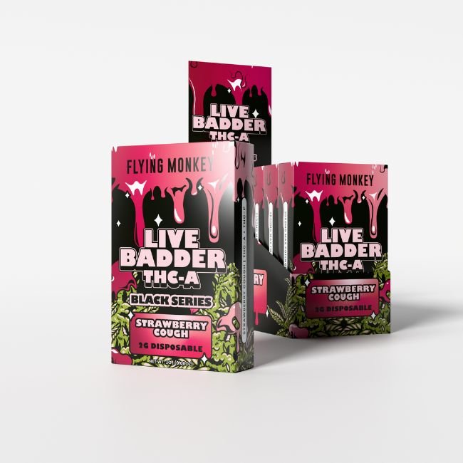 The Flying Monkey THC-A Live Badder Black Series is a premium concentrate that combines potency, purity, and flavor in one convenient, high-quality disposable format. Each box includes 8 disposable 2-gram units, allowing for a smooth, hassle-free experience with every use. THC-A Live Badder is perfect for connoisseurs looking for a clean, robust, and flavorful dabbing experience.