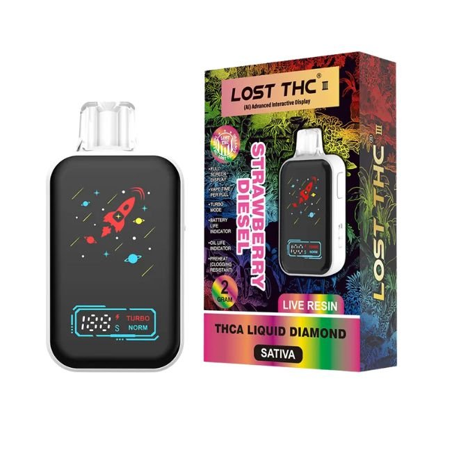 The Lost THC III THCA Liquid Diamond Live Resin is perfect for those seeking a high-quality, convenient, and potent cannabis experience. Available in 5 amazing flavors like Ice Cream Cake Indica, Blue Dream Sativa, and Strawberry Diesel Sativa, it delivers smooth, flavorful hits with every use. With 2GM of live resin per disposable and 5 disposables per box, you get a long-lasting, satisfying vape experience without the hassle.