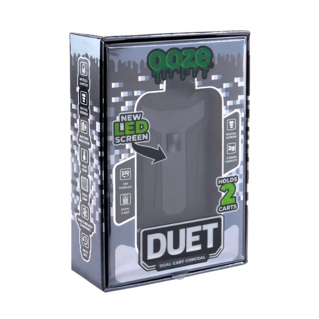 Introducing the OOZE DUET 510 Thread Dual Cart Battery, a cutting-edge vaping accessory designed to enhance your vaping experience. This versatile battery features a dual 510 thread connection, allowing you to use two 2g cartridges simultaneously. With its 650mAh battery capacity, it offers extended vaping sessions without frequent recharges. Available in four stylish colors—Twilight, Panther Black, Arctic Blue, and Ruby Red—this battery is perfect for both newcomers and experienced vapers.